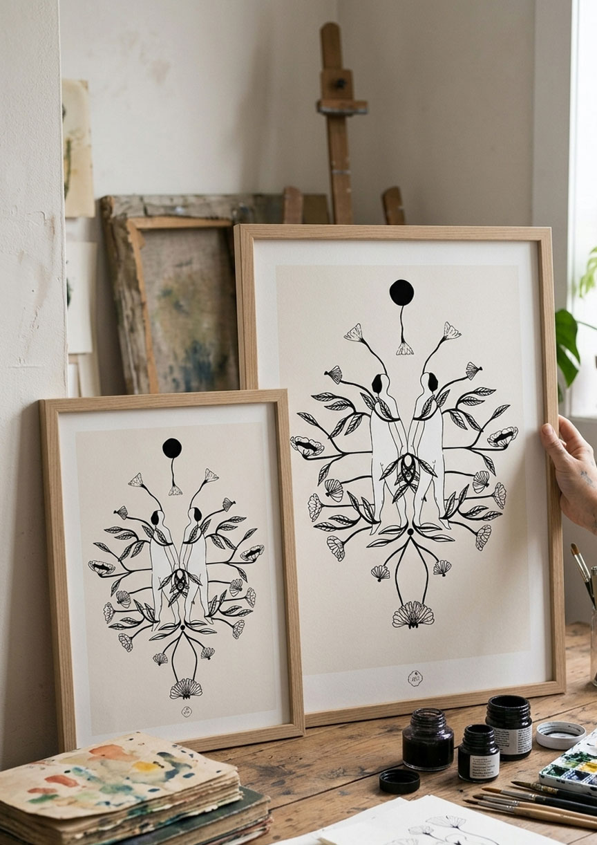 Âmes Jumelles illustration à l’encre noire A3/A4