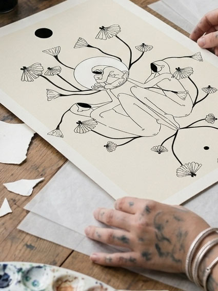 - Protection : Votre tirage est manipulé avec soin, glissé dans une pochette protectrice et enveloppé dans du papier de soie pour une réception parfaite.