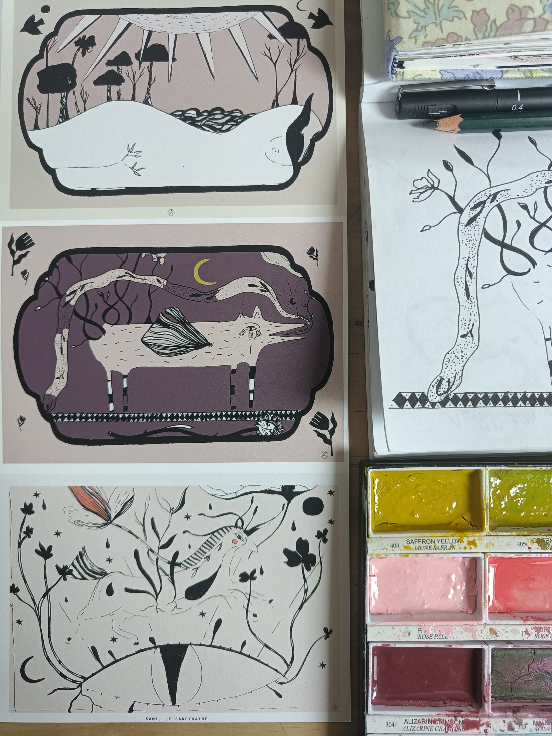 - Impression d’Art à la demande : Pour garantir une qualité optimale et une démarche responsable, j’imprime moi-même chaque exemplaire sur mon imprimante professionnelle Canon Prograf.