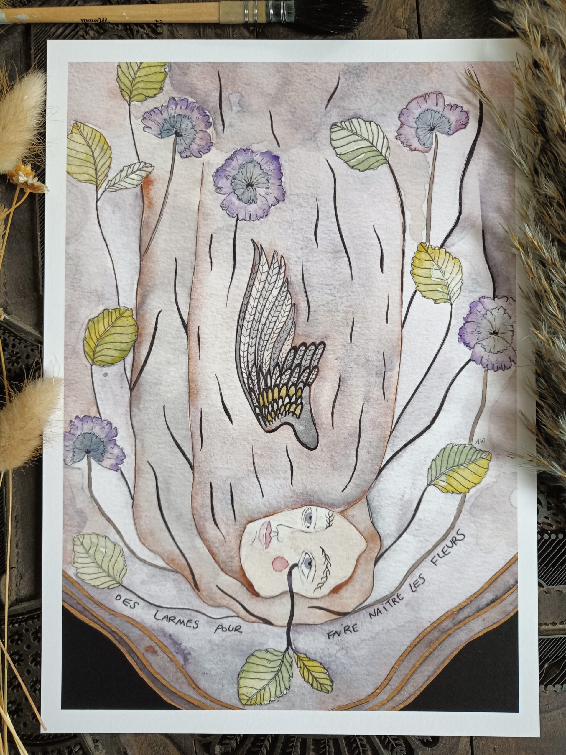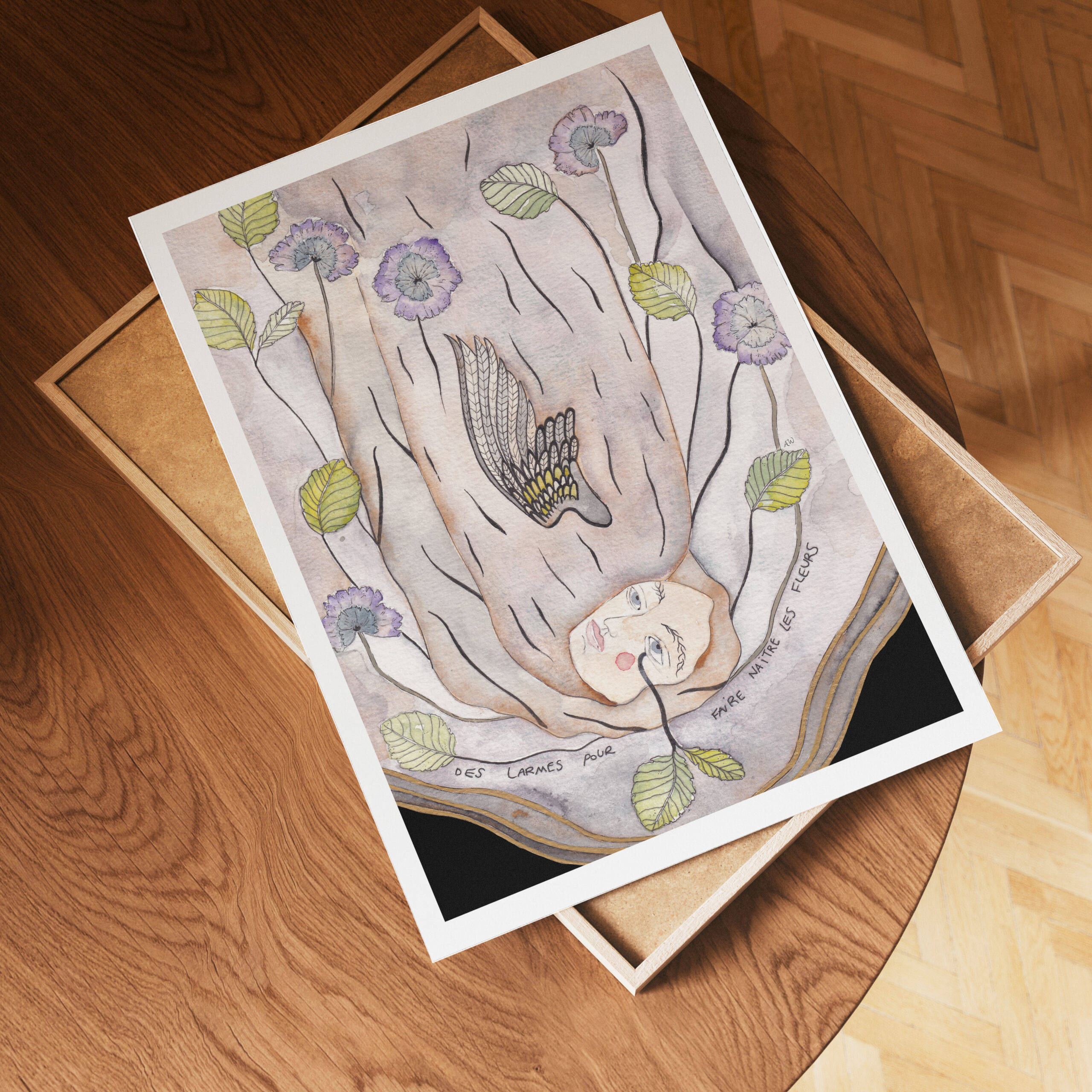Il met en scène la Fleur de l’Œil, symbole de la beauté qui éclot directement de la peine. L’œuvre est une ancre poétique pour se rappeler que les larmes versées sont la sève d’une nouvelle croissance, reliant le chagrin à l’acceptation et faisant de la résilience l’acte le plus beau.